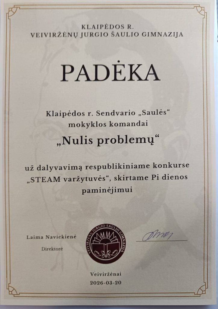 Kovo 20 dieną 5–7 klasių mokinių komanda dalyvavo Veiviržėnų Jurgio Šaulio gimnazijoje vykusiame respublikiniame konkurse „STEAM varžytuvės“, skirtame Pi dienai paminėti 🔢📐