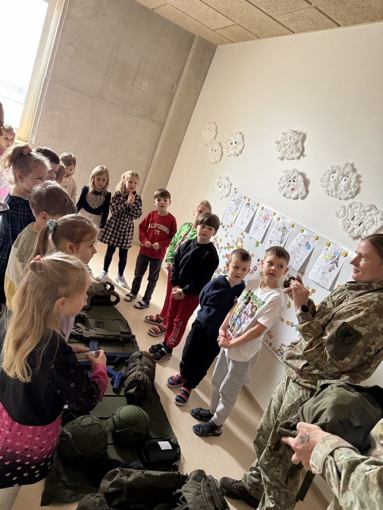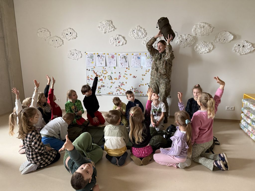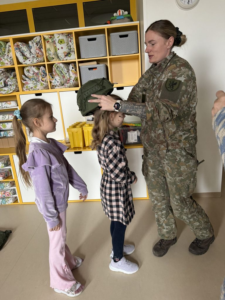 Vaikai susipažino su kario profesija, jos svarba, naudojama įranga ir atsakomybe saugant mūsų šalį. Tai buvo įdomi ir įkvepianti patirtis mažiesiems ![]()